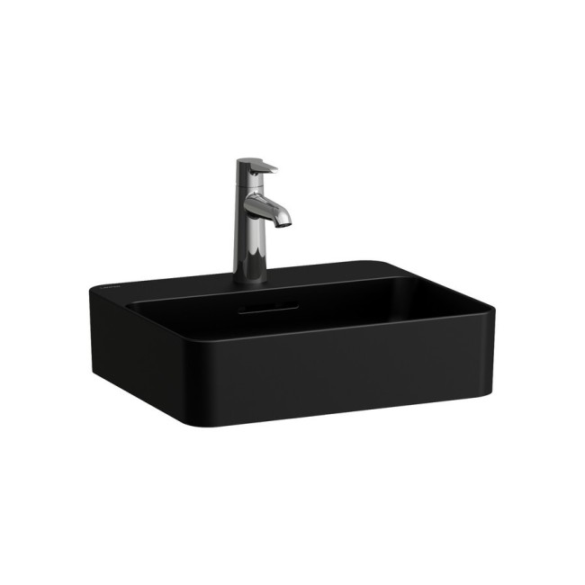 Val lave-mains à poser, face inférieure meulée avec 1 trou pour la robinetterie 450x380x115mm noir mat